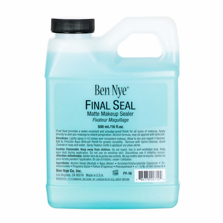 Finish your look by making it smudge-proof and water-resistant! Ben Nye Final Seal Matte Sealer locks in your look for hours of performing, entertaining or braving the weather. Keeps makeup in place, even through heavy perspiration!