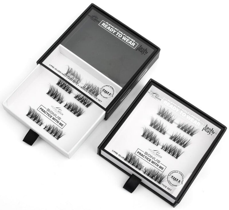 New to the 'READY-to-WEAR' Lash Play collection are our Pre-Gluedhalf lashes designed with our innovative ultra-flexible Stretch-FitLash Band that gently expands and hugs your lash line for a seamless, custom fit — no trimming, no glue, no stress.