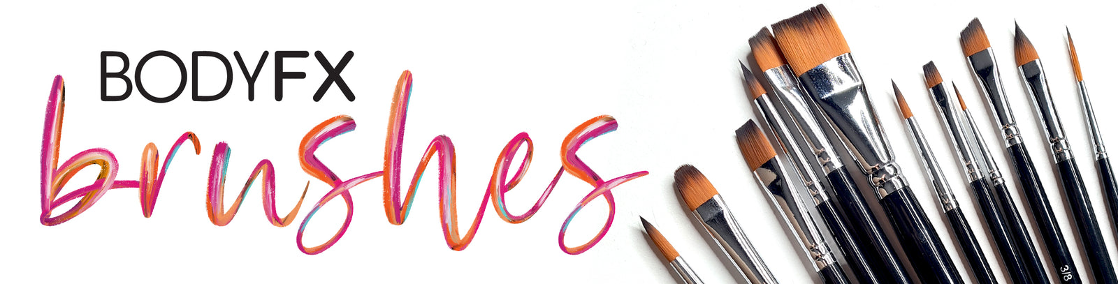 Bodyfx brushes have been designed by our artists and are modeled after our most loved brush designs.These brushes are great for face and body paint, makeup and special FX.Our synthetic bristles are vegan and cruelty free, the ombre colouring is less prone to staining by highly pigmented paints.
