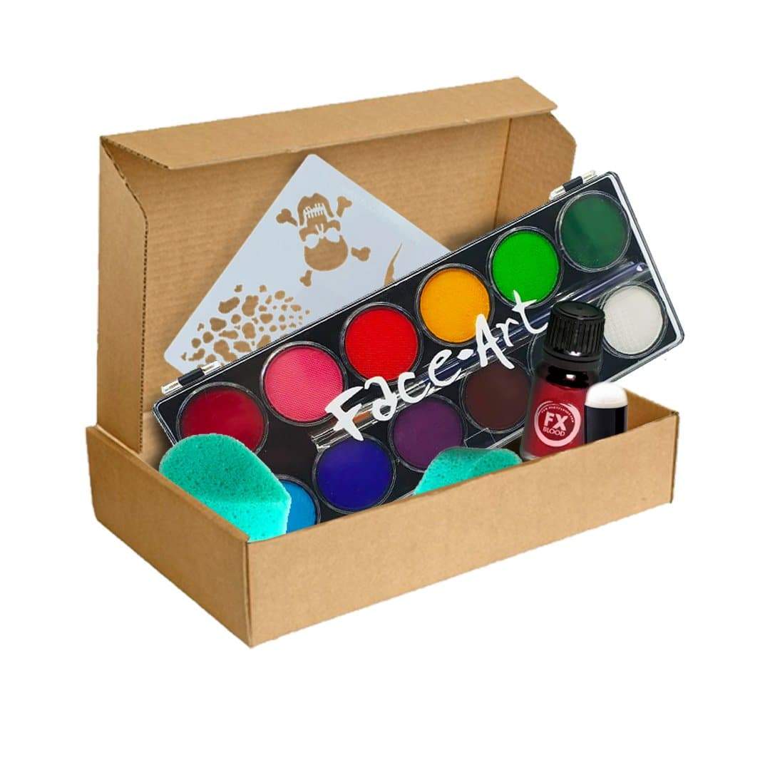 The 12 colour palette is our #1 face painting palette, with safe, water activated paints. You can use a sponge and a bit of water to cover the whole face with your desired colour (maybe white if you're planning on becoming a Vampire!).