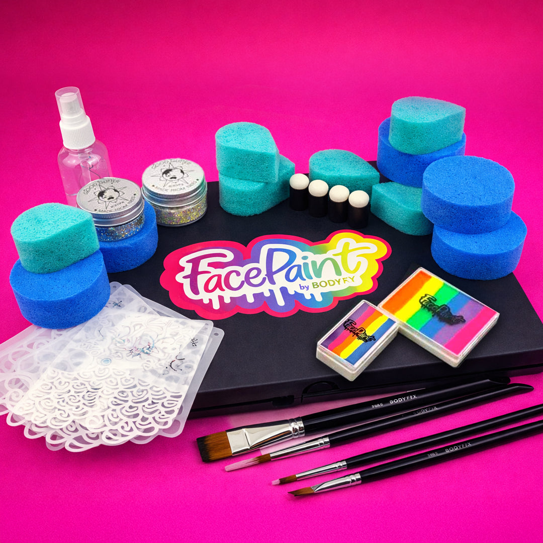 Our best selling face paint pack and for good reason. This kit has everything needed for hours of creative fun, making it perfect for kids’ parties, playdates, school holidays, or rainy days at home. It includes a vibrant range of professional, skin-safe face paints, brushes, sponges, plus a bonus set of 5 popular stencils to make painting easy and fun.